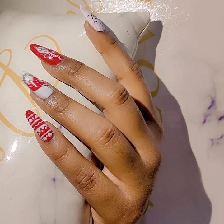 • Acrylic nail extension with nail art